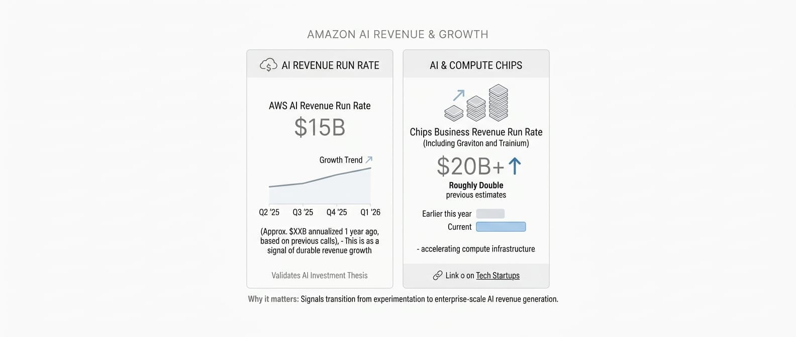 Why it matters: Amazon's concrete AI revenue figures validate the infrastructure investment thesis and signal the transition from AI experimentation to revenue generation at enterprise scale.