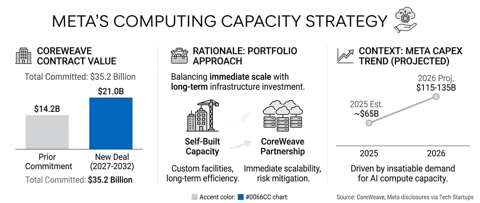 This comes as Meta's 2026 capital expenditures are projected at $115-135 billion, nearly double 2025 levels, driven by insatiable demand for AI compute. CoreWeave benefits by diversifying beyond Microsoft, with no single customer now exceeding 35% of revenue.