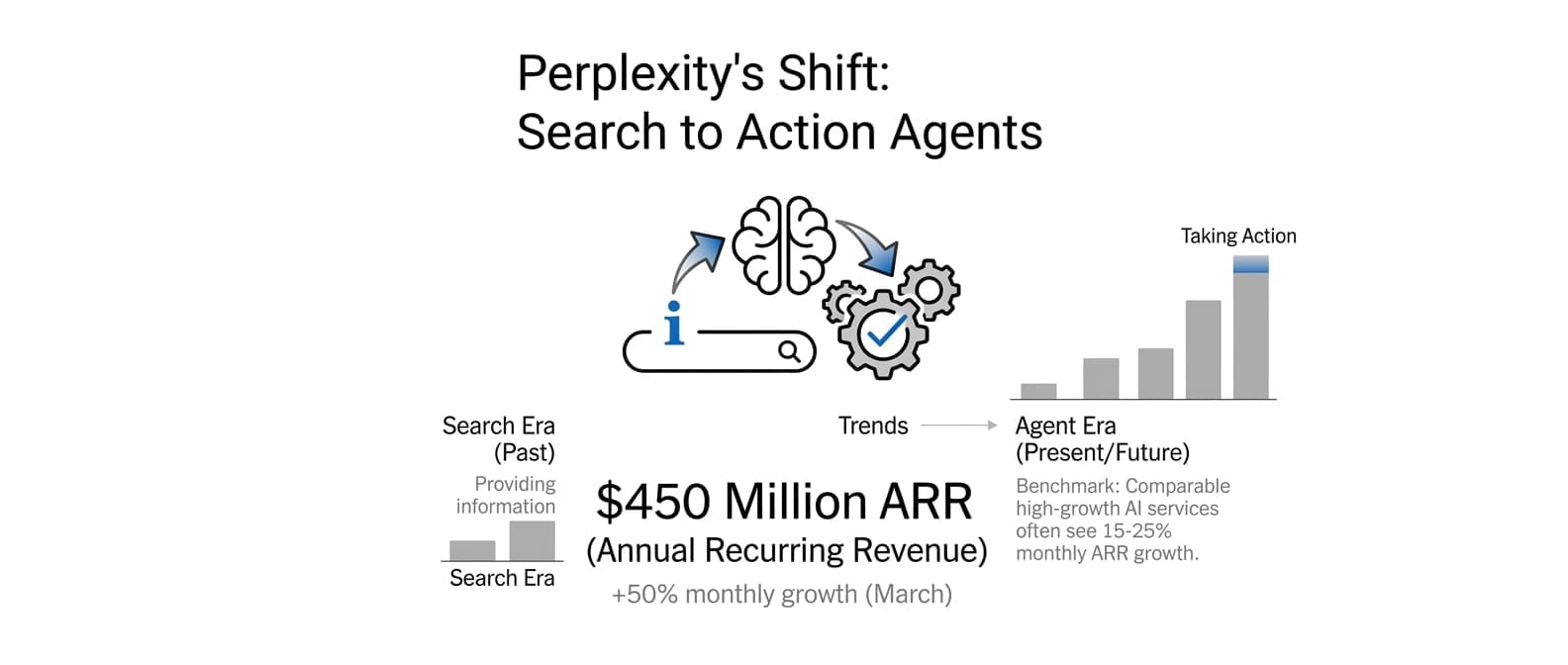 Not long ago Perplexity was pitched as a Google Search killer, but now its revenue story runs on AI agents that do things rather than just find them. Annual recurring revenue hit $450 million in March after a 50% jump in a single month, fueled by over 100 million monthly users across consumer and enterprise tiers priced from $20 to $200.