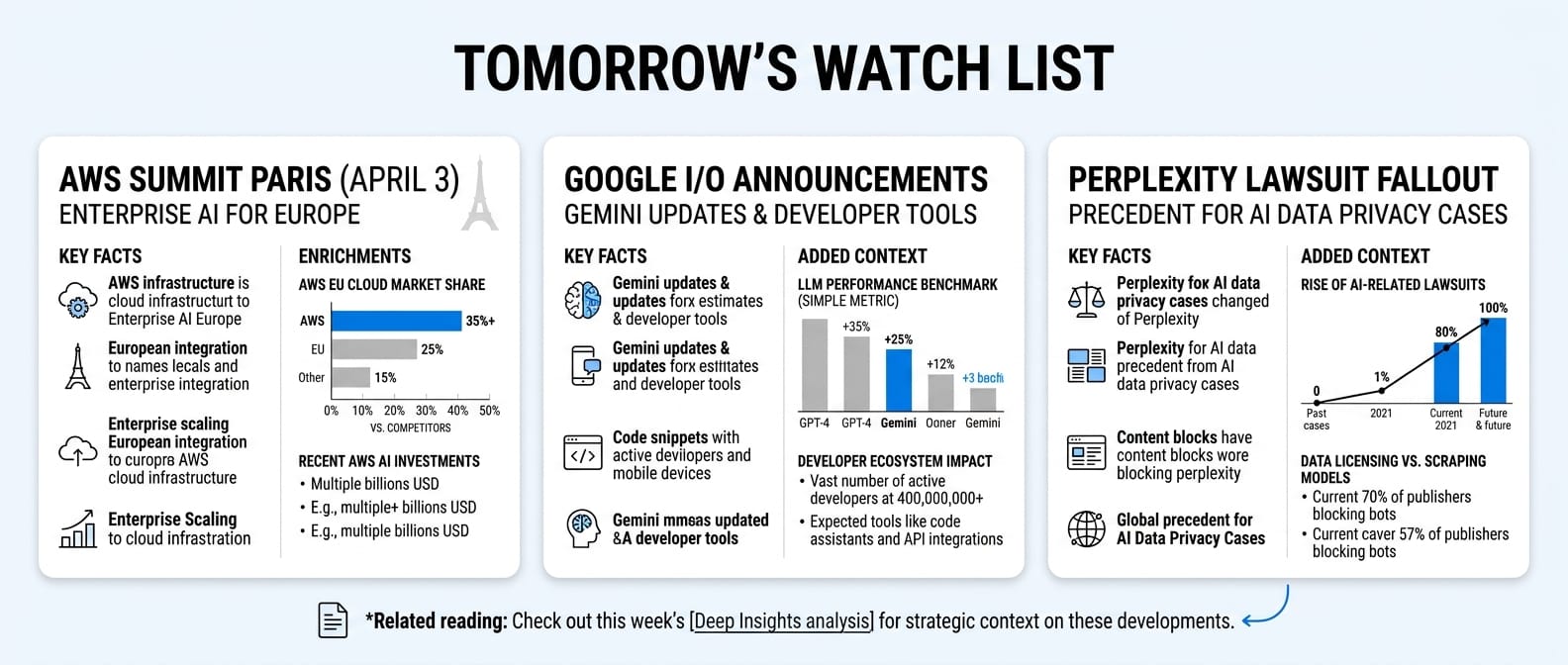- AWS Summit Paris (April 3) - Expect enterprise AI announcements focused on European markets