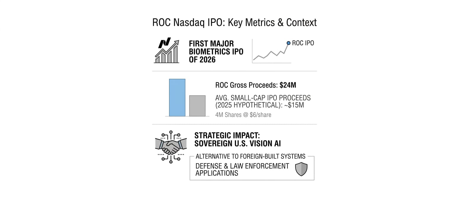 ROC has raised $24 million in gross proceeds from the first major biometrics IPO of 2026. The company closed the offering with 4 million shares of its common stock claimed at the offering price of $6 each.
