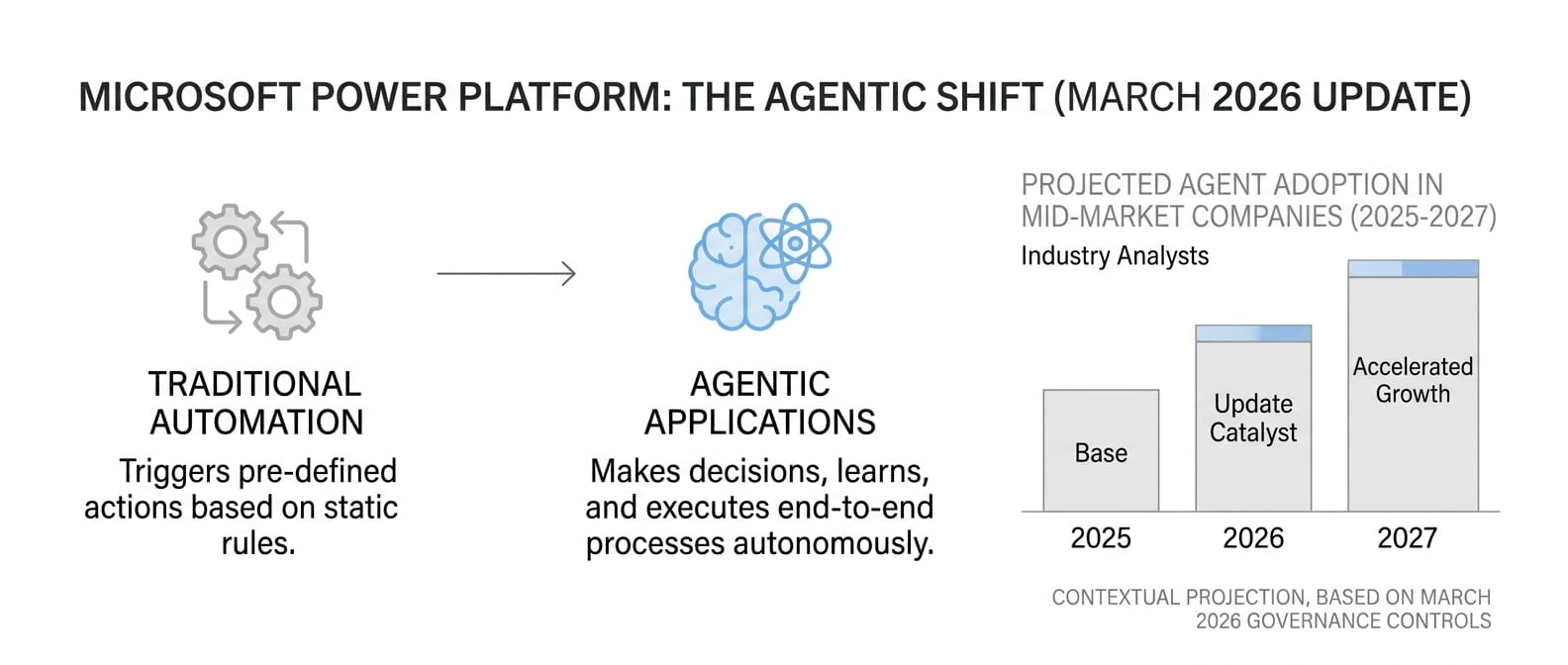 Microsoft's March 2026 Power Platform update introduces agentic applications that enable autonomous business processes, significantly enhanced governance controls for enterprise management, and AI-powered development tools, with these autonomous applications representing a fundamental shift from traditional workflow automation to systems that can make decisions, learn from interactions, and execute complex business processes without constant human oversight.