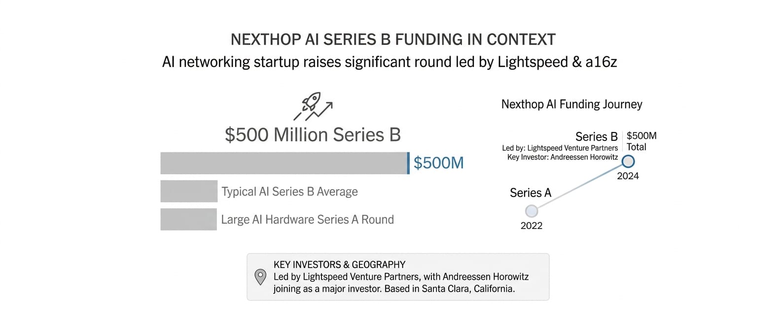 AI networking startup Nexthop AI raised $500 million in Series B funding led by Lightspeed Venture Partners, with Andreessen Horowitz joining as a major investor, developing switching technology built on open-source operating systems for AI and cloud networking. Based in Santa Clara, California.