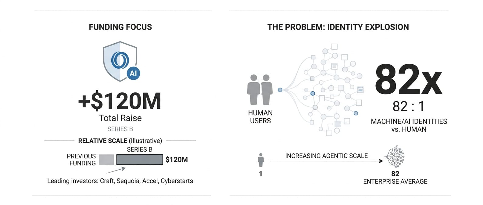 AI identity security platform raised $120 million in Series B funding from Craft Ventures, Sequoia Capital, Accel, and Cyberstarts, bringing total funding to nearly $195 million.