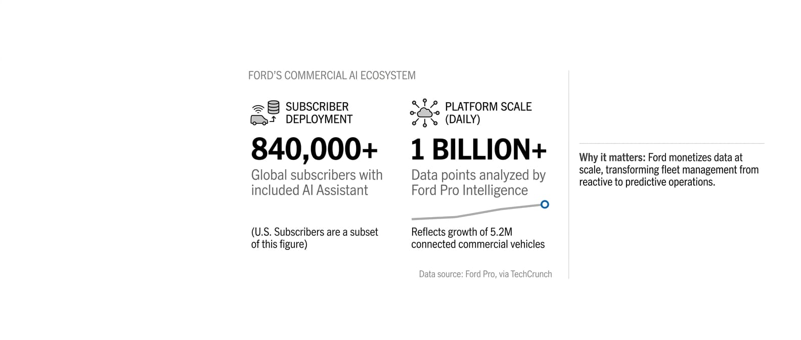 Why it matters: Ford's commercial AI deployment demonstrates how traditional automakers are monetizing data at scale, transforming fleet management from reactive to predictive operations.