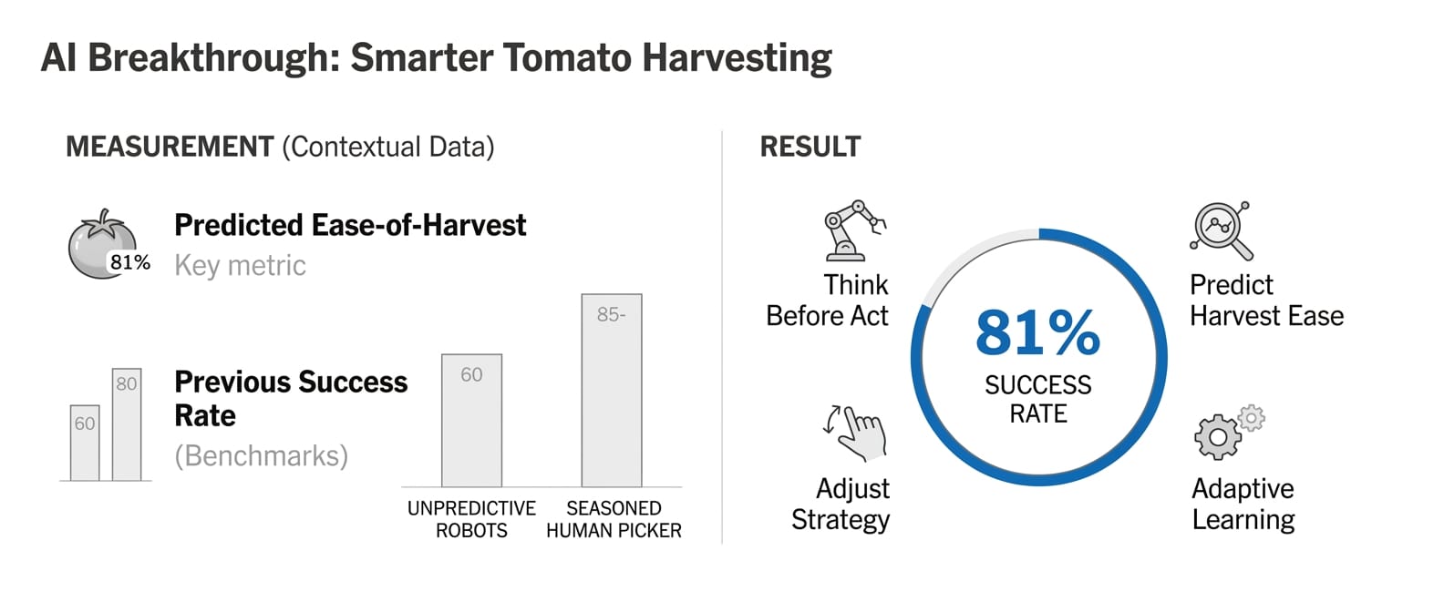 March 23, 2026 · AI-powered Robot Learns How to Harvest Tomatoes More Efficiently · Mar. 18, 2026 A new tomato-picking robot is learning to think before it acts. Instead of simply identifying ripe fruit, it predicts how easy each tomato will be to harvest and adjusts its approach accordingly.