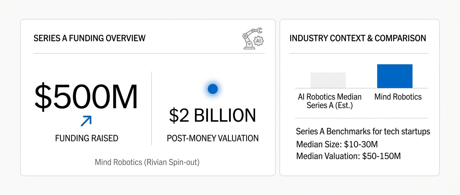 Mind Robotics, a spin out of Rivian has raised $500 million in a Series A funding at a $2 billion valuation. The company develops advanced robotics and AI-driven automation technologies, leveraging expertise from Rivian's engineering and autonomous systems background.