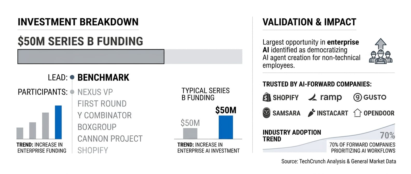 Why it matters: Benchmark's lead investment validates the thesis that democratizing AI agent creation for non-technical employees represents the largest opportunity in enterprise AI automation.