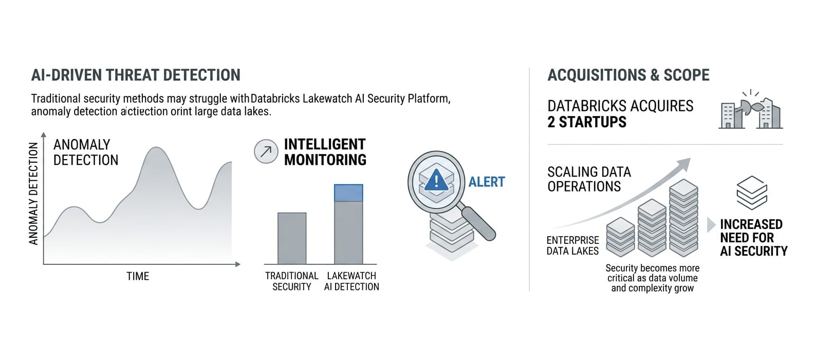 Databricks has unveiled Lakewatch, a new AI-driven security product designed to enhance threat detection and investigation within its data platform, while confirming two startup acquisitions. The platform provides AI-powered monitoring and anomaly detection for enterprise data lakes, addressing the growing need for intelligent security as organizations scale their data operations.
