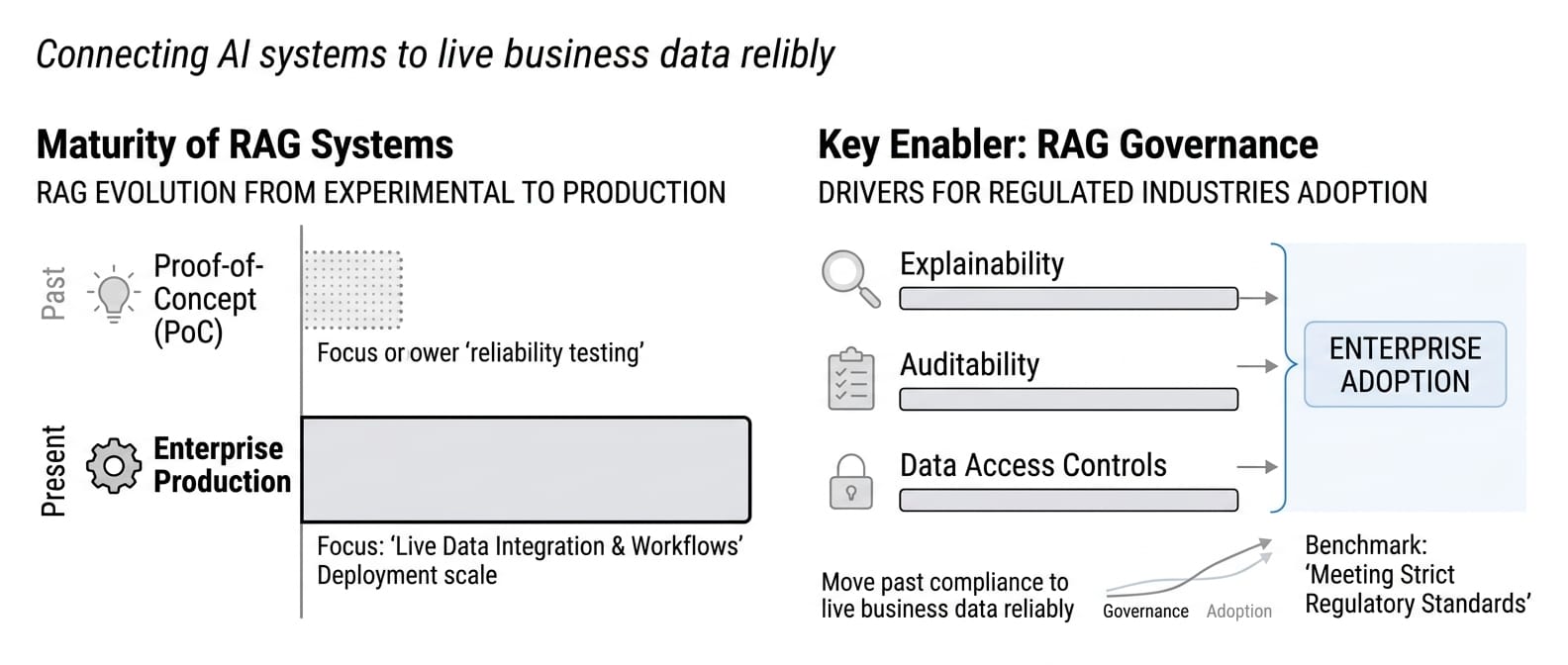 One area that's getting more attention in 2026 is governance. As RAG systems move into regulated industries like finance, healthcare, and legal services, the need for explainability, auditability, and data access controls has become a real blocker for adoption.