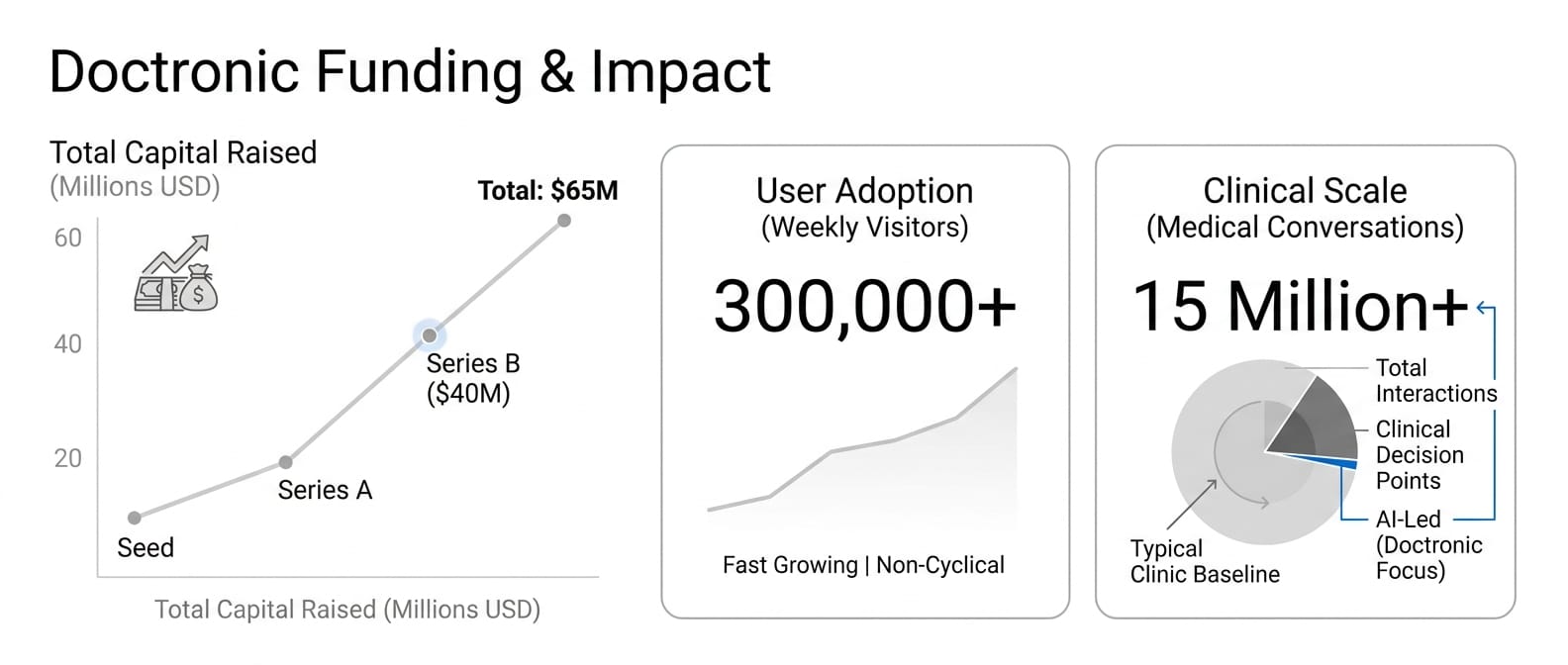 AI doctor startup Doctronic has raised $40 million in a Series B funding round, bringing its total capital raised to $65 million. The New York-based startup offers a free, HIPAA-compliant, AI-powered doctor consultation platform that operates 24/7 and autonomously makes clinical decisions. It now serves more than 300,000 unique weekly visitors and has conducted over 15 million medical conversations with more than one million users.