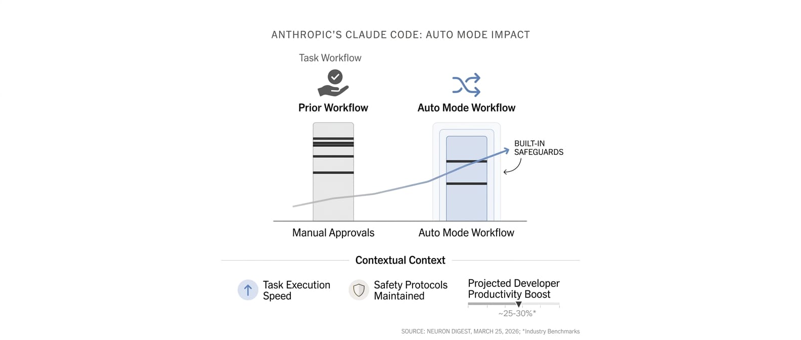 Anthropic launched auto mode for Claude Code, letting it execute tasks with fewer manual approvals while built-in safeguards review each action for destructive behavior before running automatically.