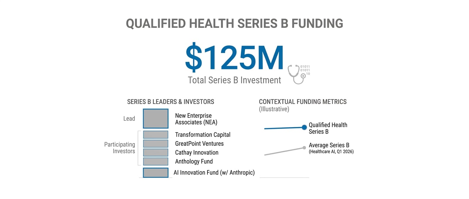 Qualified Health, a Palo Alto, CA-based company providing an enterprise AI platform built for health systems, raised $125M in Series B funding. The round was led by New Enterprise Associates, Inc. (NEA), with participation from new investors Transformation Capital, GreatPoint Ventures, Cathay Innovation, Menlo Ventures' Anthology Fund, an AI innovation fund created in partnership with Anthropic. Led by CEO Justin Norden, Qualified Health is a provider of an enterprise AI platform and strategic AI partner helping health systems deploy safe and scalable AI to drive measurable clinical and financial outcomes.