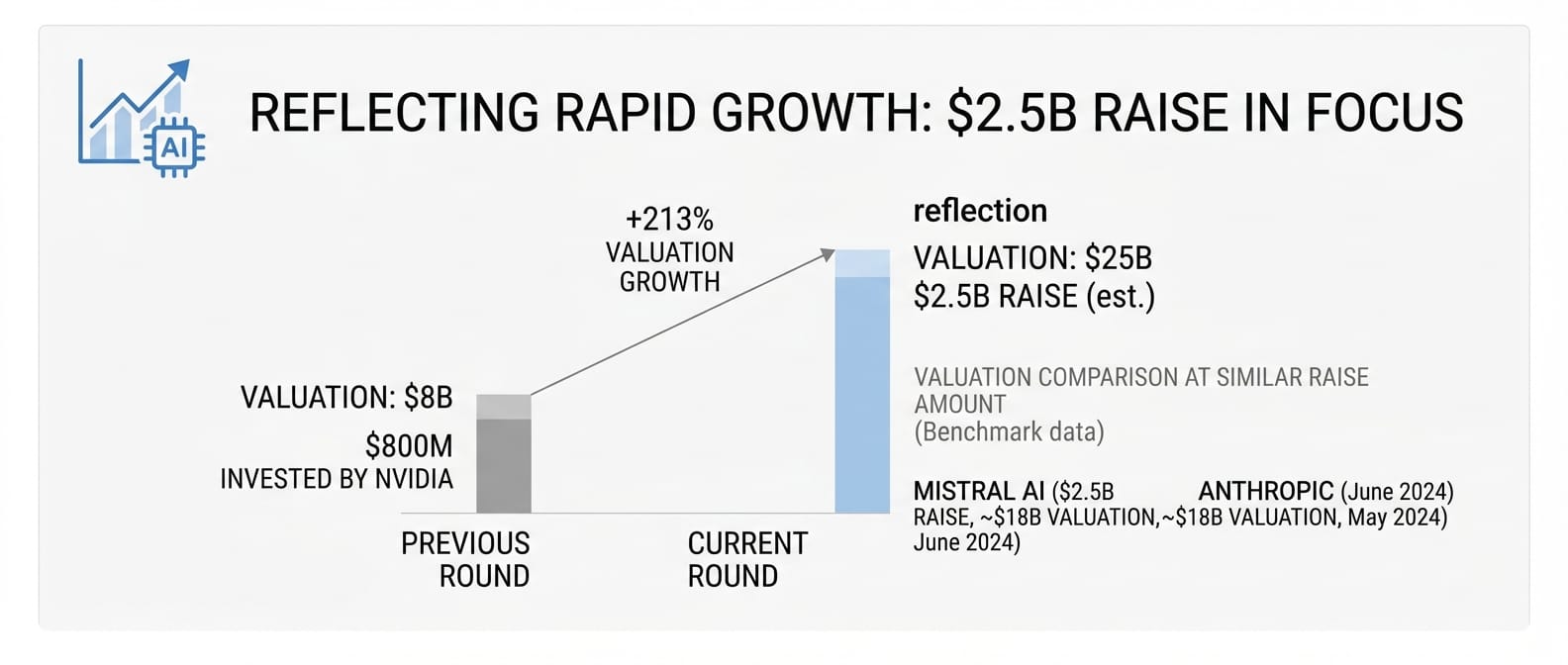 Reflection, a New York-based AI startup backed by NVIDIA, is in talks to raise about $2.5 billion at a $25 billion valuation. The company is building open-source large-language models and agentic AI systems for software development. NVIDIA previously invested roughly $800 million in Reflection at an $8 billion valuation, and JPMorgan Chase is reportedly considering participating in the new round.