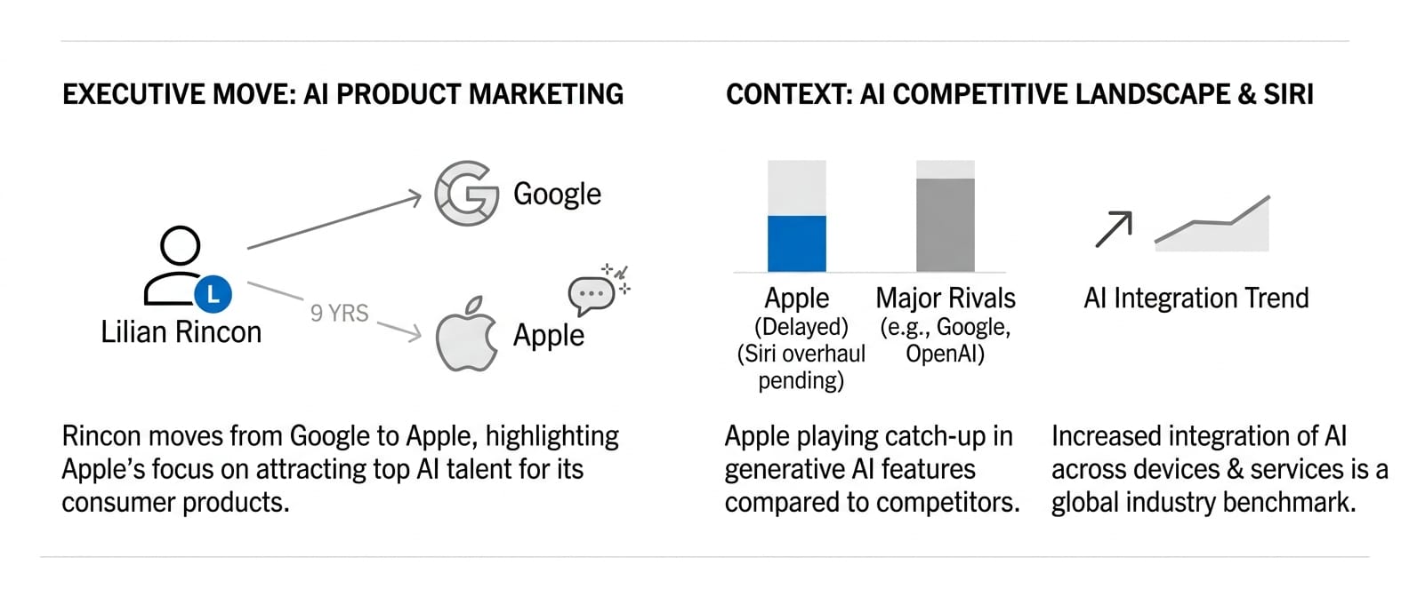 Impact: This signals Apple's commitment to rebuilding Siri as a competitive AI assistant, with specialized marketing expertise to position its upcoming AI features against Google and OpenAI.