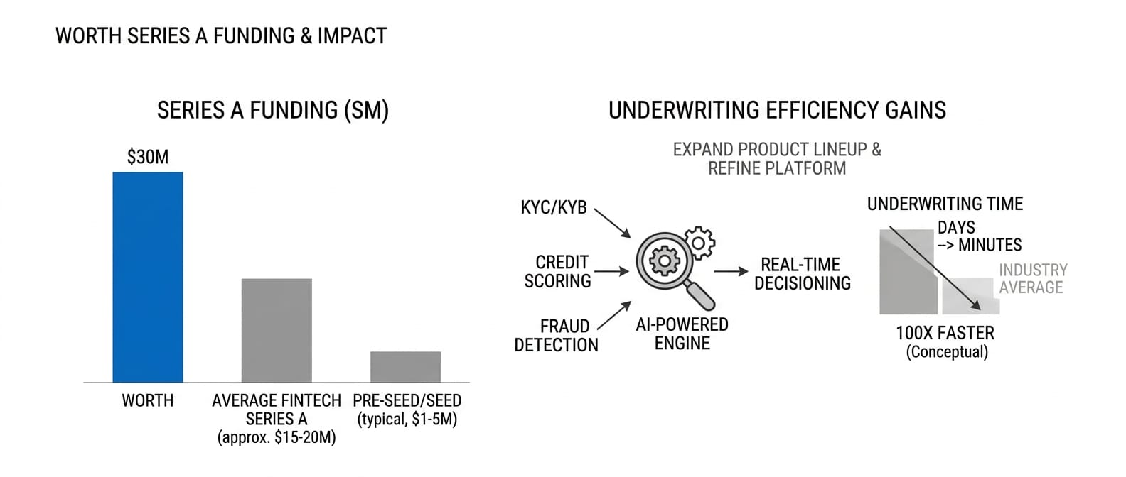Worth, a New York-based fintech, has raised $30 million in Series A funding to automate small-business underwriting. The round was led by Fulcrum Equity Partners, with American Express Ventures and TTV Capital also participating. Worth offers an AI-driven platform that consolidates KYC/KYB checks, credit scoring, and fraud detection into a real-time engine. The funding will be used to refine its decision-intelligence platform and expand its product lineup.