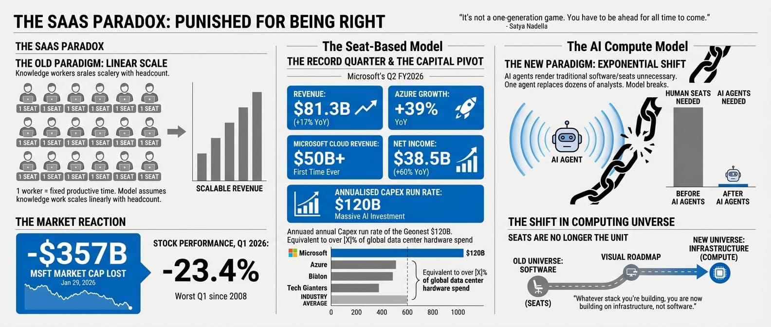 To understand why Microsoft got punished for its best quarter ever, you have to understand what the SaaS business model was built on, and what disappears when that foundation is removed.