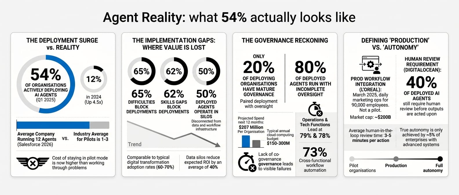 | KPMG Q1 AI Pulse, 54% actively deploying agents | Mar 31 | Pilot purgatory ending |
