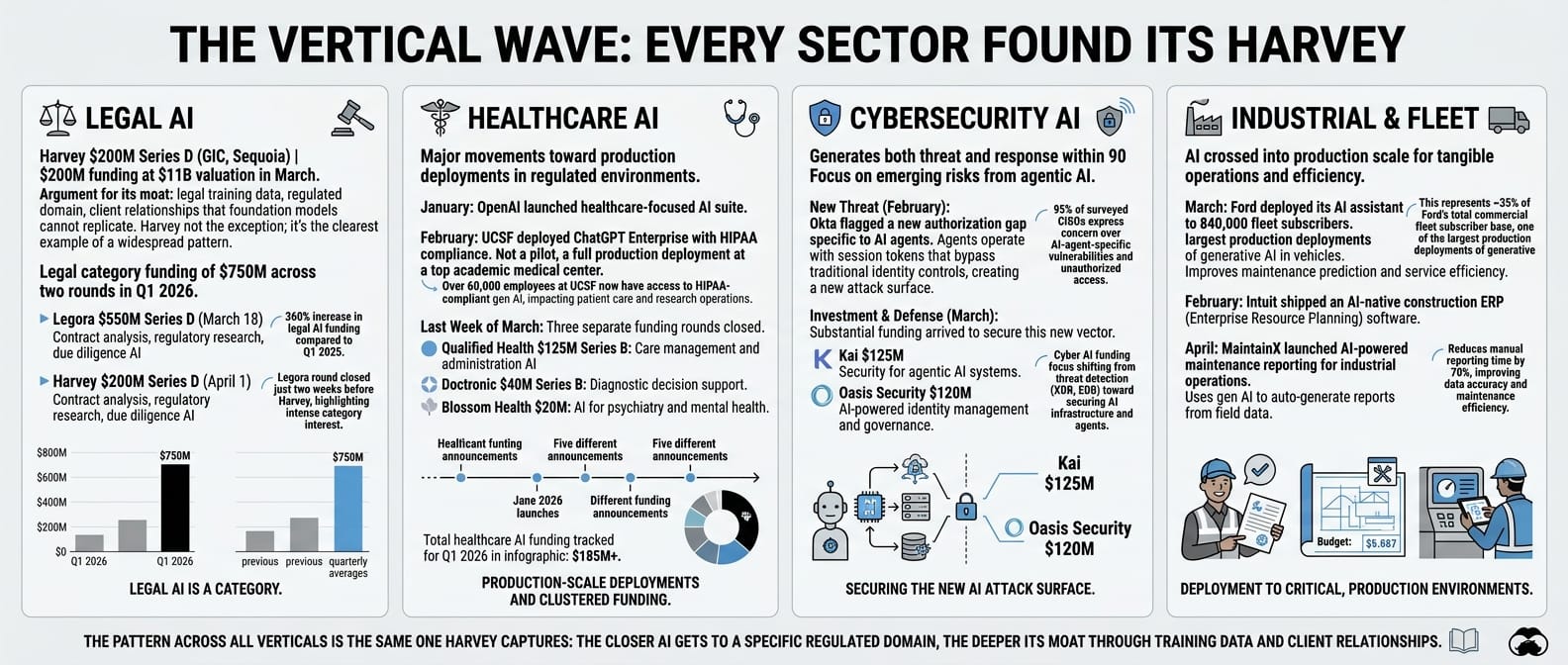 Legal, healthcare, cybersecurity, industrial: every major enterprise vertical raised nine-figure vertical AI rounds in the same 90 days. - What Q2 has to answer