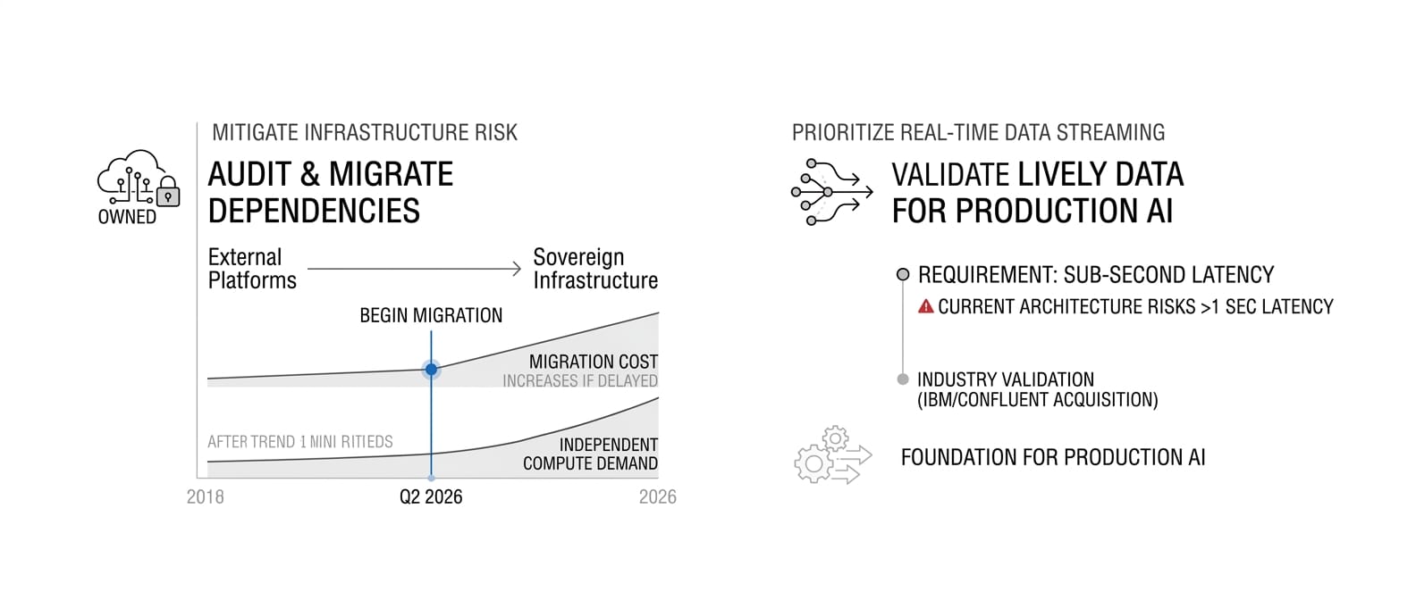Prioritize data streaming architecture. IBM's Confluent acquisition validates real-time data infrastructure as the foundation for production AI. If your systems can't deliver live data to AI models with sub-second latency, you're building on outdated architecture. Evaluate streaming platforms now—prices will rise as demand consolidates around proven providers.