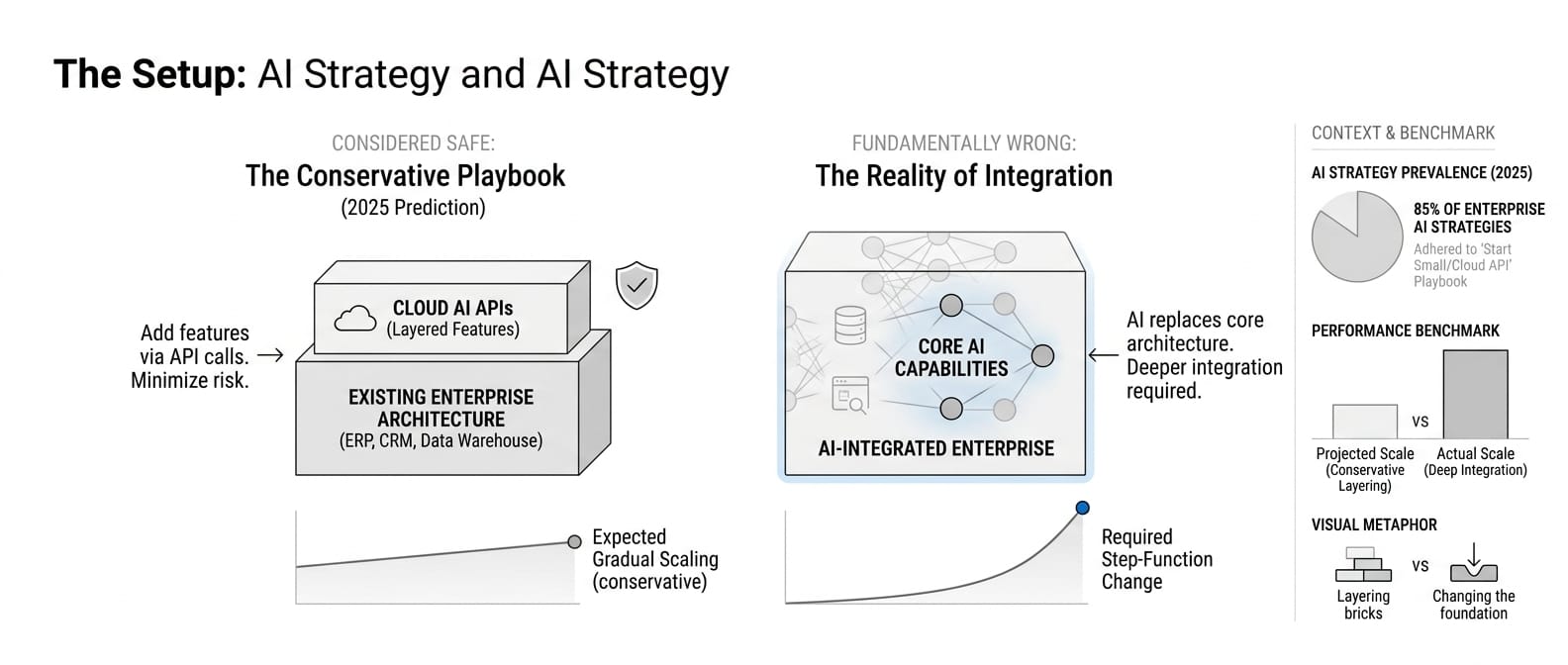 Every enterprise AI strategy deck in 2025 preached the same gospel: "Start small. Run pilots. Scale gradually. Use cloud APIs to minimize risk." The playbook was sensible, conservative, and completely wrong.