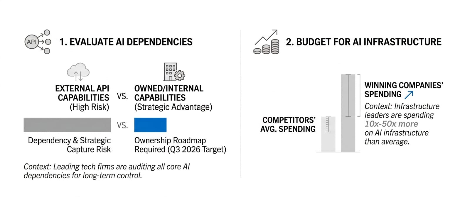 Audit your API dependencies now. Every AI feature running on external APIs represents potential strategic capture. If a capability is core to your business value, you need an ownership roadmap by July.