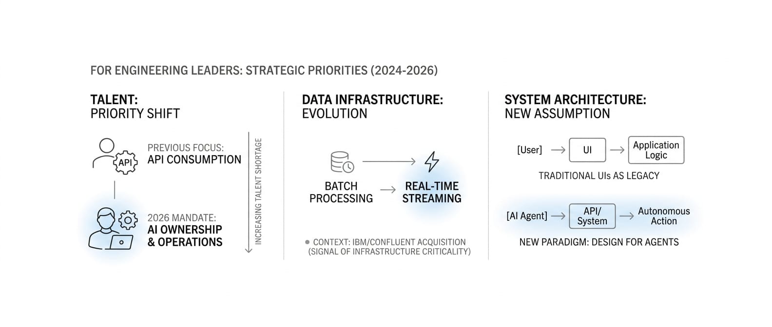Hire for ownership, not consumption. Your 2026 hiring plan should prioritize engineers who can build and operate AI infrastructure, not just integrate APIs. The talent shortage is about to get much worse.